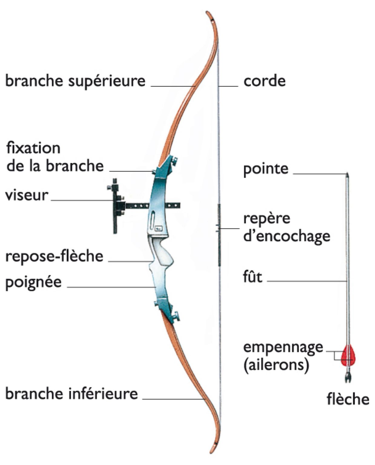 Arme formée d'une tige flexible dont les extrémités sont reliées par une corde que l'on tend fortement pour lancer des flèches : Tir à l'arc.